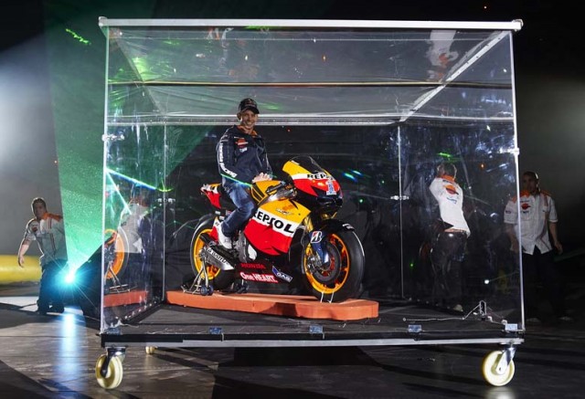 El evento finalizó con la aparición por sorpresa del vigente campeón de Moto GP encima de la nueva Honda RC213V.